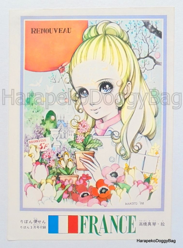 Keywords: Vintage, Retro, Japanese, Japan, Macoto Takahashi, Makoto, Manga Artist, Kawaii, Cute, Girl, Girly, Shojo, Shoujo, Big Eyes, Comics, Furoku, Ribon Comics, Showa Period, 1960s, Sixties, 60s, 1968, Paper Sheet.