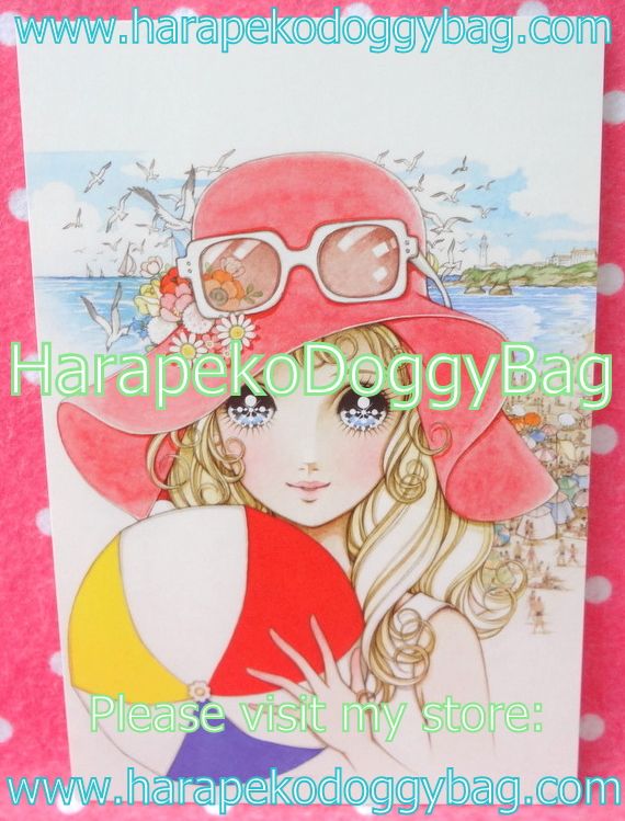 Retro Shojo Girl Postcard - Beach Ball (2014) : Illustration by Macoto Takahashi