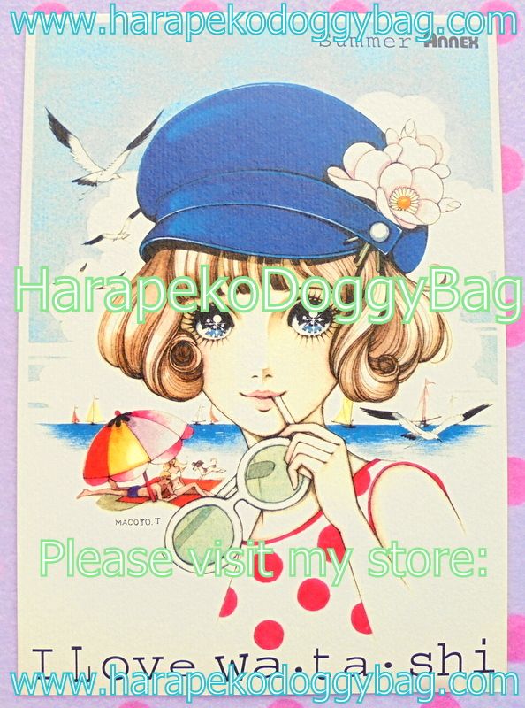 Retro Shojo Girl Postcard : Promo Card - I Love Watashi / Summer (2000s) Illustration by Macoto Takahashi