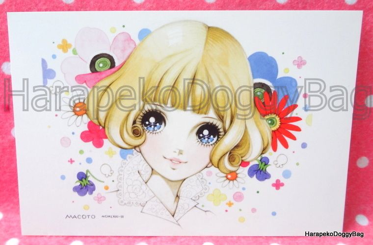Keywords: Retro, Japanese, Japan, Macoto Takahashi, Makoto, Manga Artist, Kawaii, Cute, Girl, Girly, Shojo, Shoujo, Big Eyes, Postcard, Flowers, 2014.