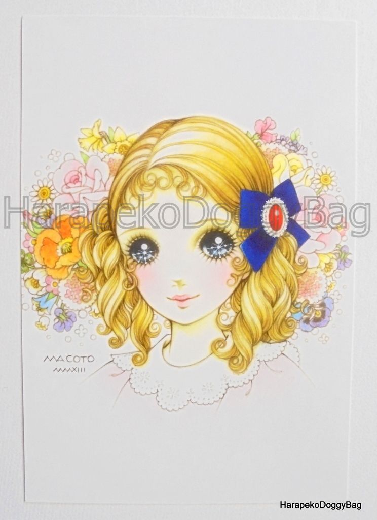 Keywords: Retro, Japanese, Japan, Macoto Takahashi, Makoto, Manga Artist, Kawaii, Cute, Girl, Girly, Shojo, Shoujo, Big Eyes, Flowers, Postcard, 2014.