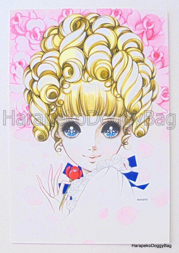 Keywords: Retro, Japanese, Japan, Macoto Takahashi, Makoto, Manga Artist, Kawaii, Cute, Girl, Girly, Shojo, Shoujo, Big Eyes, Rose, Flowers, Postcard, 2017.