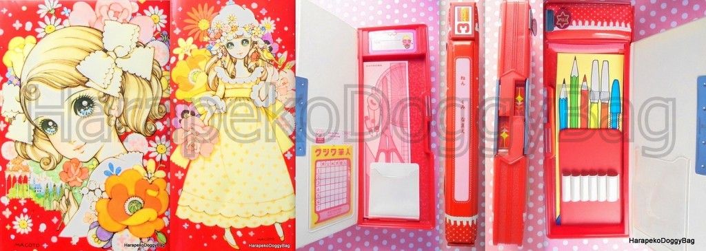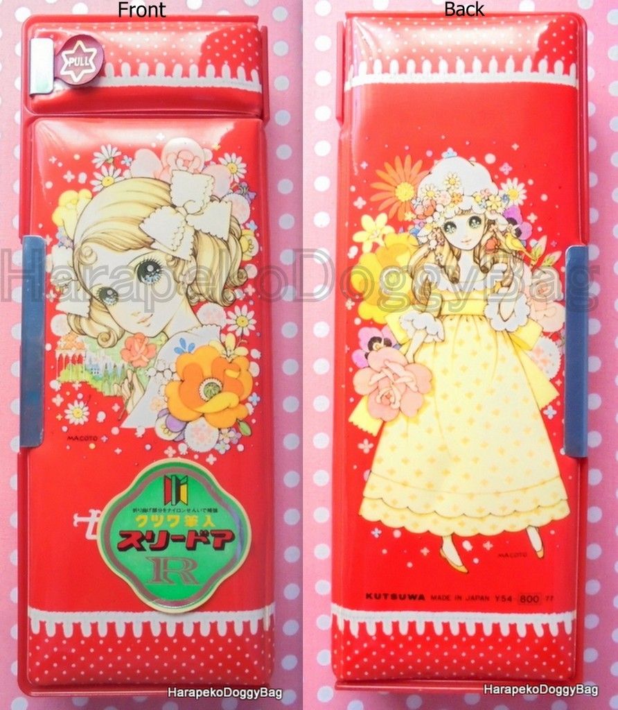 Keywords: Vintage, Retro, Japanese, Macoto Takahashi, Shoujo, Shojo Manga, Kawaii, Cute, Girl, Big Eyes, Kutsuwa, Stationery, Pencil Case, Showa Period, Seventies, 1970s.