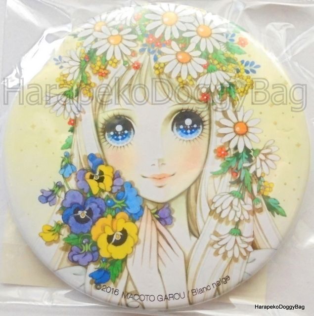 Here is a metal pin button / badge with illustrations by the shojo manga artist Macoto Takahashi.