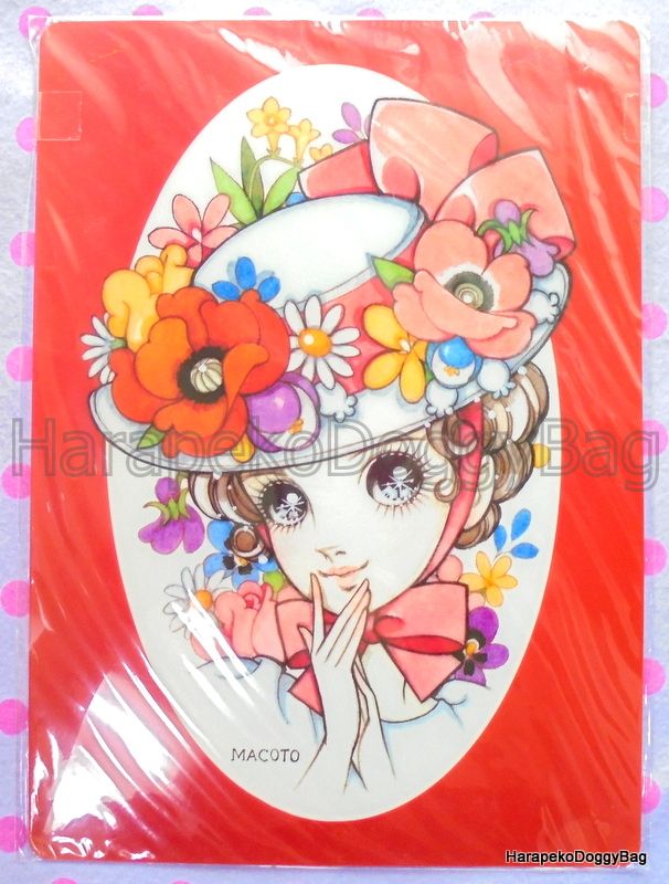 Keywords: Retro, Japanese, Japan, Macoto Takahashi, Makoto, Manga Artist, Kawaii, Cute, Girl, Girly, Shojo, Shoujo, Big Eyes, Stationery, Shitajiki, Picture Board, Illustration, Flowers.