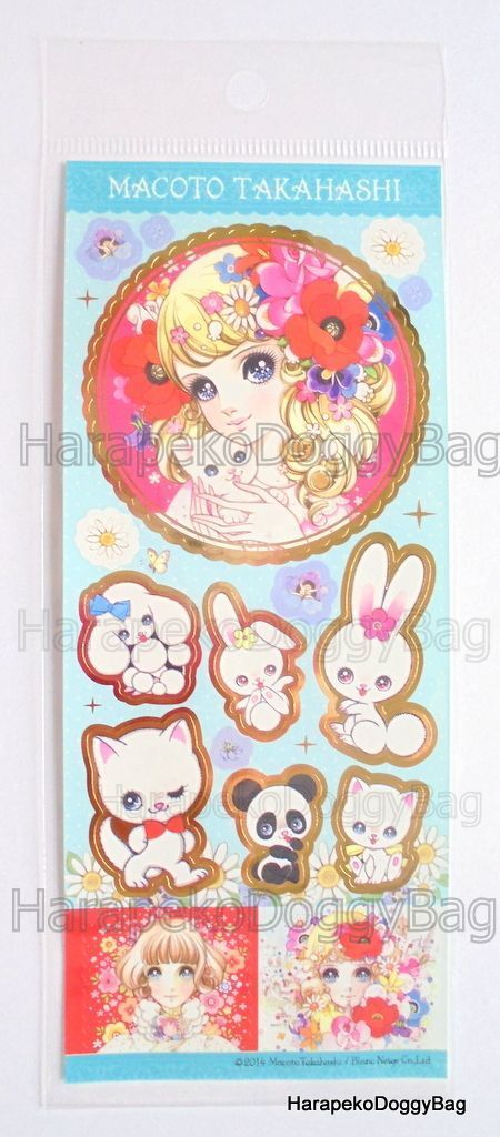 Keywords: Retro, Japanese, Japan, Macoto Takahashi, Makoto, Manga Artist, Kawaii, Cute, Girl, Girly, Shojo, Shoujo, Big Eyes, Stationery, Paper Sticker Sheet, 2014.