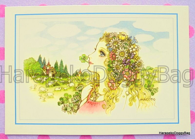 Retro : Shojo Greeting Card - Four Leaf Clover : Illustrated by Macoto Takahashi