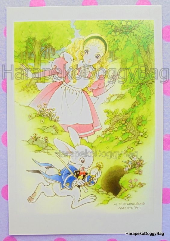 Keywords: Retro, Japanese, Japan, Macoto Takahashi, Makoto, Manga Artist, Kawaii, Cute, Girl, Girly, Shojo, Shoujo, Big Eyes, Alice in Wonderland, Postcard.