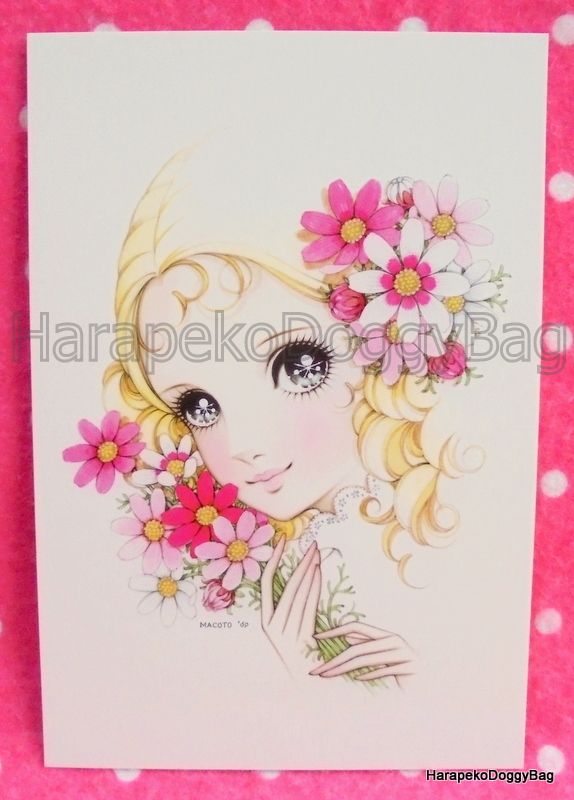 Keywords: Retro, Japanese, Japan, Macoto Takahashi, Makoto, Manga Artist, Kawaii, Cute, Girl, Girly, Shojo, Shoujo, Big Eyes, Postcard, Flowers, 2010.