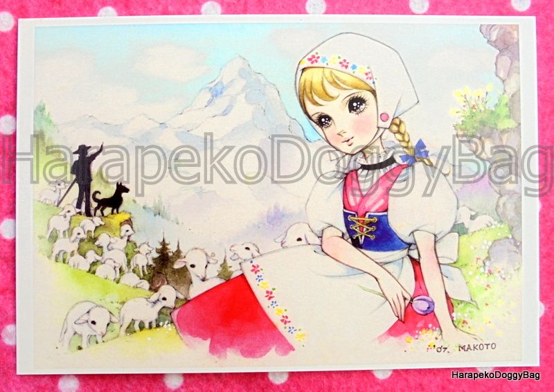 Keywords: Retro, Japanese, Japan, Macoto Takahashi, Makoto, Manga Artist, Kawaii, Cute, Girl, Girly, Shojo, Shoujo, Big Eyes, Postcard, Flowers, Alps.