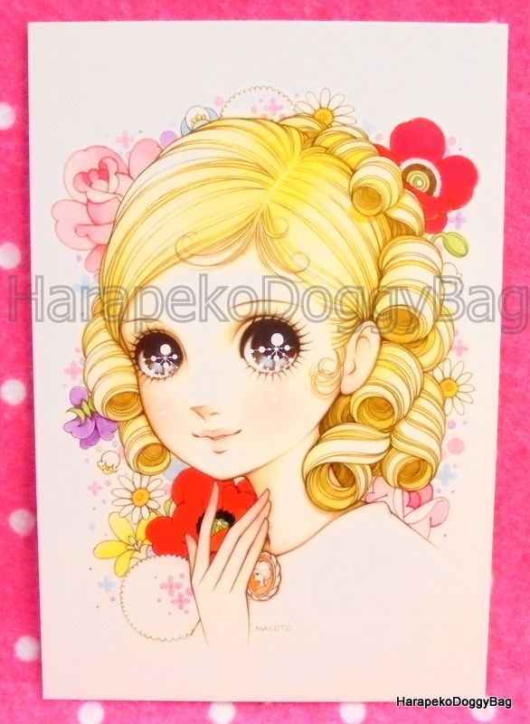 Keywords: Retro, Japanese, Japan, Macoto Takahashi, Makoto, Manga Artist, Kawaii, Cute, Girl, Girly, Shojo, Shoujo, Big Eyes, Postcard, Flowers, 2010.