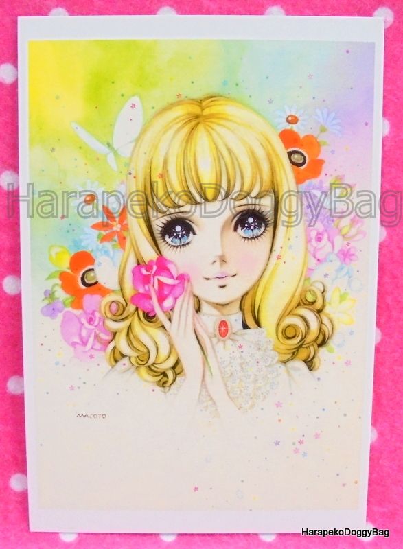 Keywords: Retro, Japanese, Japan, Macoto Takahashi, Makoto, Manga Artist, Kawaii, Cute, Girl, Girly, Shojo, Shoujo, Big Eyes, Postcard, Flowers, 2010.