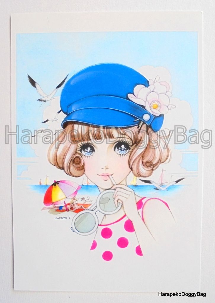 Keywords: Retro, Japanese, Japan, Macoto Takahashi, Makoto, Manga Artist, Kawaii, Cute, Girl, Girly, Shojo, Shoujo, Big Eyes, Postcard, Beach, 2010.