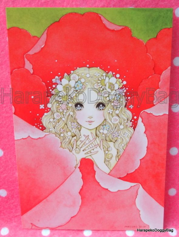 Keywords: Retro, Japanese, Japan, Macoto Takahashi, Makoto, Manga Artist, Kawaii, Cute, Girl, Girly, Shojo, Shoujo, Big Eyes, Postcard, Flowers, 2014.